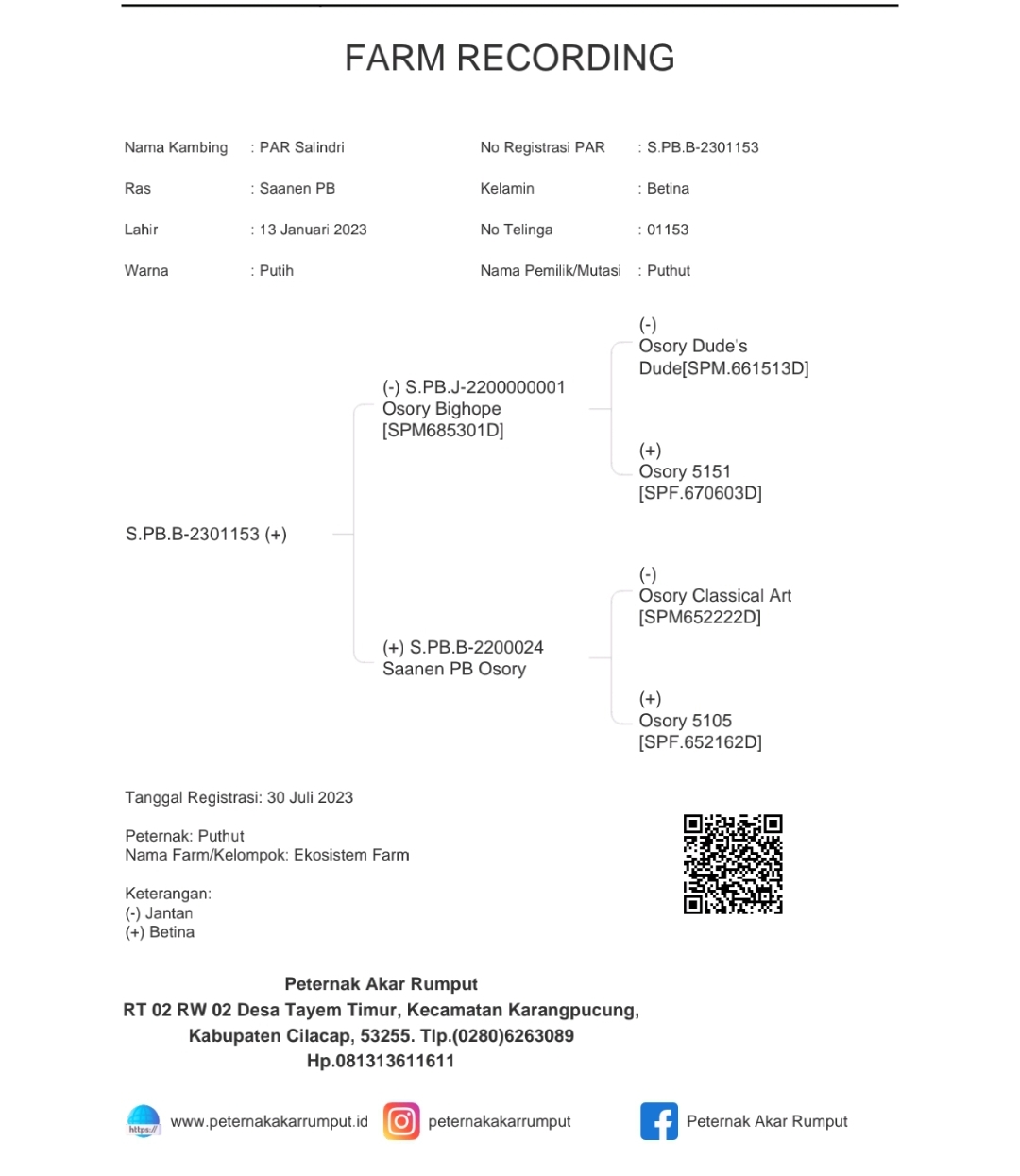 8PAR SalindriS.PB.B-2301153Saanen PBS.PB.J-2200000001S.PB.B-220002413-01-2023PuthutPuthutBetinaEkosistem FarmPutih